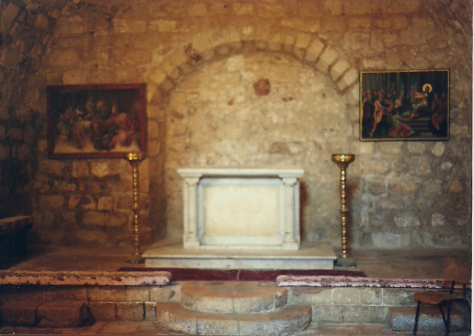 written: 'The Spirit of the Lord is upon Me, Because He has anointed Me to preach the gospel to the poor. He has sent Me to heal the brokenhearted, To preach deliverance to the captives And recovery of sight to the blind, To set at liberty those who are *oppressed, (downtrodden) To preach the acceptable year of the Lord.' (Isa. 61:1-2) Then He closed the book, and gave it back to the attendant and sat down. And the eyes of all who were in the synagogue were fixed on Him. And He began to say to them, 'Today this Scripture is fulfilled in your hearing.' So all bore witness to Him, and marveled at the gracious words which proceeded out of His mouth. And they said, 'Is this not Joseph's son?' And He said to them, 'You will surely say this proverb to Me, "Physician, heal yourself! Whatever we have heard done in Capernaum, do also here in Your country." ' Then He said, 'Assuredly, I say to you, no prophet is accepted in his own country. But I tell you truly, many widows were in Israel in the days of Elijah, when the heaven was shut up three years and six months, and there was a great famine throughout all the land; but to none of them was Elijah sent except to *Zarephath (Gr. Sarepta) , in the region of Sidon, to a woman who was a widow. And many lepers were in Israel in the time of Elisha the prophet, and none of them was cleansed except Naaman the Syrian.' Then all those in the synagogue, when they heard these things, were filled with *wrath (rage), and rose up and thrust Him out of the city; and they led Him to the brow of the hill on which their city was built, that they might throw Him down over the cliff. Then passing through the midst of them, He went His way." This Nazareth Synagogue floor is the original floor that Jesus walked on when He was a boy (13) and a man. |